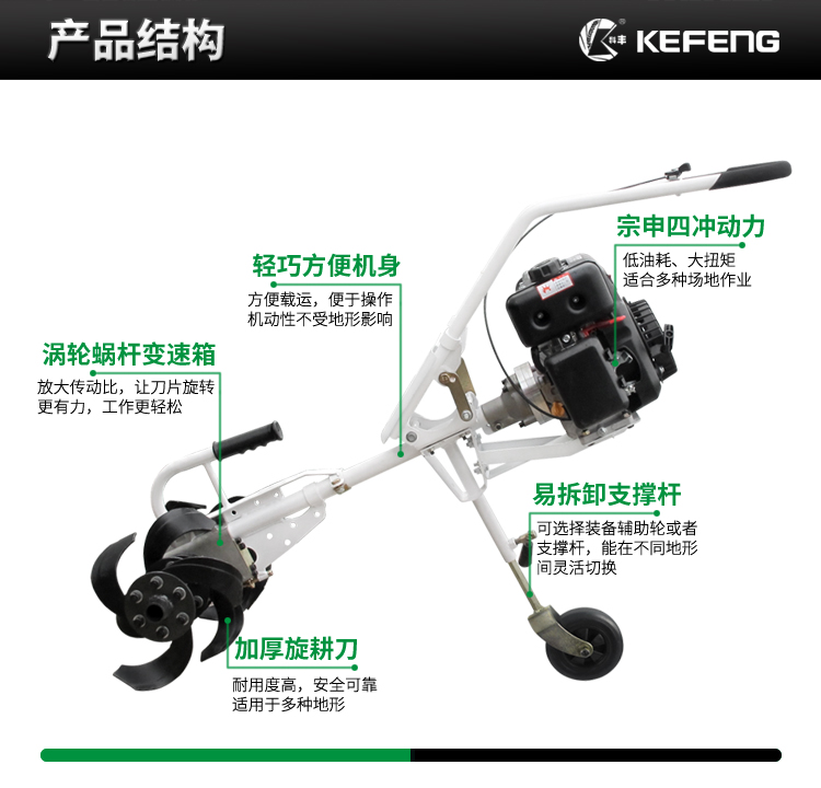 ■ 宗申四沖程引擎,低油耗,大扭矩適合多數(shù)場合作業(yè)。