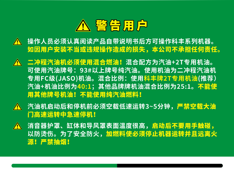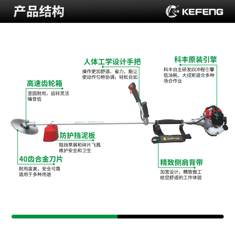 ■ 科豐二沖程引擎,低油耗,大扭矩適合多數(shù)場合作業(yè)。