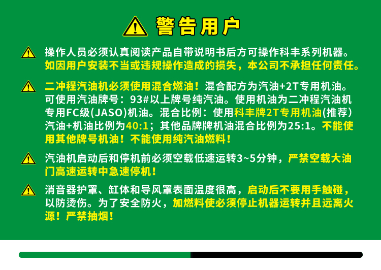 ■ 科豐二沖程引擎,低油耗,大扭矩適合多數(shù)場合作業(yè)。