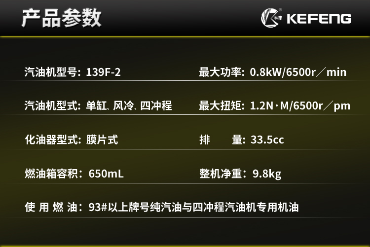 ■ 科豐四沖程引擎,低油耗,大扭矩適合多數(shù)場合作業(yè)。