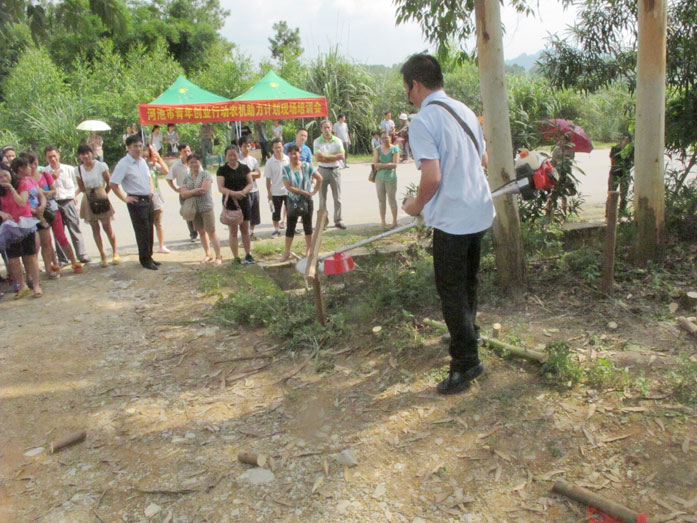 啟動(dòng)儀式上宜州團(tuán)市委和桂林高新區(qū)科豐機(jī)械有限責(zé)任公司共同簽訂了合作協(xié)議。宜州市農(nóng)機(jī)局開展農(nóng)業(yè)機(jī)械購(gòu)置國(guó)家補(bǔ)貼政策培訓(xùn),桂林高新區(qū)科豐機(jī)械有限責(zé)任公司進(jìn)行了農(nóng)機(jī)技術(shù)使用技術(shù)培訓(xùn)。啟動(dòng)儀式后,全體與會(huì)人員還現(xiàn)場(chǎng)觀摩了科豐公司農(nóng)機(jī)作業(yè)過(guò)程。
