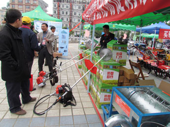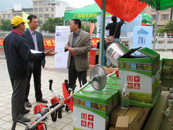 2010年12月19日上午,中國都安·首屆密洛陀文化旅游節(jié)農(nóng)機(jī)產(chǎn)品展銷會在廣西都安縣文體廣場開幕。據(jù)悉,這次農(nóng)機(jī)展會規(guī)模大、人氣旺、氛圍濃,展覽面積達(dá)到3600余平方米,共設(shè)170個(gè)展位。本次展銷會聚集了廣西區(qū)內(nèi)外69家農(nóng)機(jī)企業(yè)及經(jīng)銷商,中國一拖、約翰迪爾、桂林科豐等農(nóng)機(jī)知名企業(yè)和經(jīng)銷商參展,參展的農(nóng)機(jī)具達(dá)11個(gè)類別330臺套,涵蓋了110多個(gè)農(nóng)機(jī)生產(chǎn)企業(yè),大部分農(nóng)業(yè)機(jī)械是已被列入國家或廣西購機(jī)補(bǔ)貼目錄的機(jī)型。農(nóng)機(jī)展會現(xiàn)場購機(jī)踴躍,開展第一天就有80多戶報(bào)名選購120多臺套參展的農(nóng)機(jī)具,交易額達(dá)480萬元,購買的農(nóng)戶獲補(bǔ)貼130多萬元。