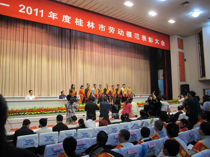 我公司曾憲高同志榮獲2010—2011年度桂林市勞動模范榮譽稱號,并于今天上午由市領導向其頒發(fā)了獎牌及證書。
